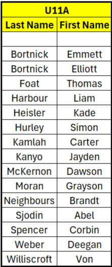 CARSTAIRS BRUINS - U11- A TEAM SCHEDULE PLAYER ROSTER COACHES Head Coach: Aaron Sjodin TEAM MANAGER Vanessa Bortnick and Mandy Moran